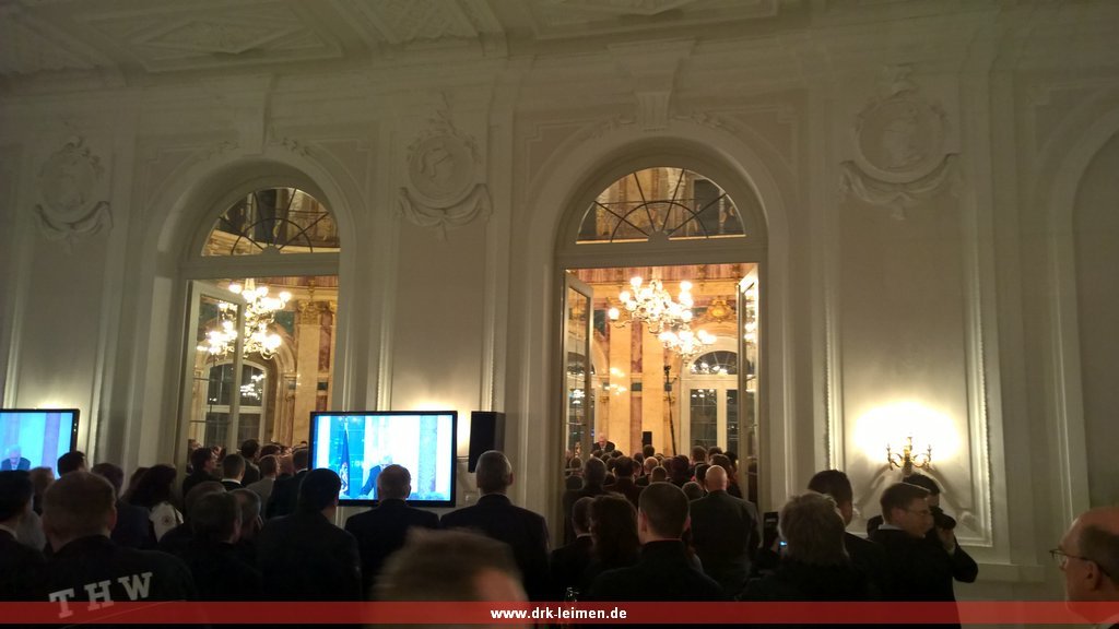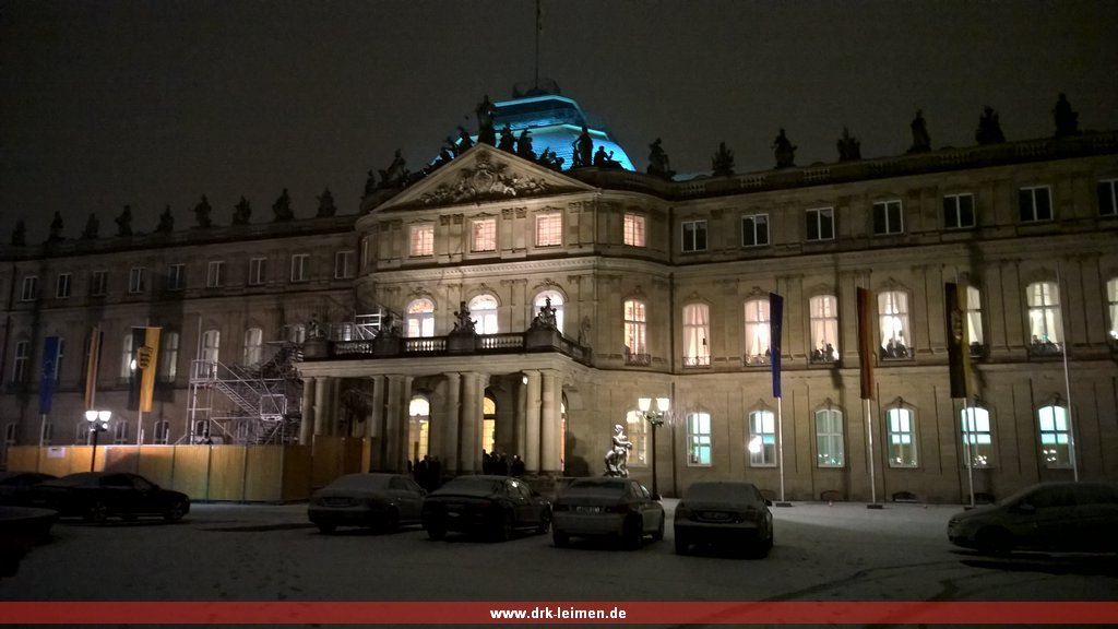 Parallel hatte unser Ministerpräsident Winfried Kretschmann um 19 Uhr die haupt- und ehrenamtlichen Helfer der Flüchtlingsunterbringung zu einem Empfang ins neue Schloss nach Stuttgart geladen. Zwei unserer fünf dort eingesetzten Helfer folgten dieser Einladung, bei der Kretschmann in seiner Rede den vielen Helfern, die unter anderem in Bruchsal und Heidelberg provisorische Unterkünfte betrieben hatten. Er warb in seiner Rede für die Unterstützung der Flüchtlinge und lobte das in Baden-Württemberg geleistete. Allerdings bemängelte er auch die europäische Politik und mahnte hier Veränderungen an.