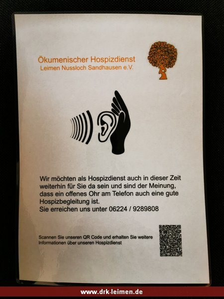 So könnte man es salopp umschreiben, was beim Online-Bereitschaftsabend des DRK Leimen passierte, als Melanie Ratz vom Ökumenischen Hospizdienst Leimen-Nußloch-Sandhausen e.V. über ihre Arbeit referierte.