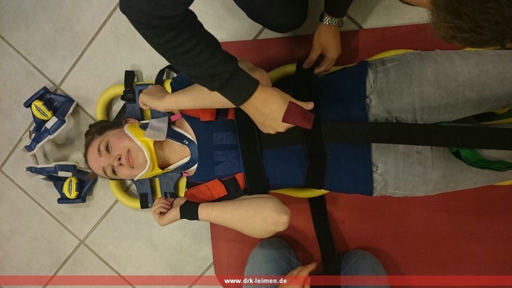 Am Freitag, den 16.10. gab Bereitschaftsleiter Matthias Frick zunächst die aktuellsten Infos zur aktuellen Flüchtlingssituation in der Region aus Sicht des DRK weiter. Im Anschluss wurde das neue Befestigungssystem “Spinne” für das Spineboard vorgestellt und praktisch geübt. Auch konnte der Beckengurt für Open-Book-Beckenfrakturen nach einer kurzen Wiederholung der Einweisung nochmals ausprobiert werden.